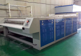 熨平機(jī)的調(diào)試常和其試運(yùn)行同時進(jìn)行。為此,須在設(shè)備調(diào)試時,將一定數(shù)量的、用水浸透并經(jīng)甩干烘干的布草織物備好待用。